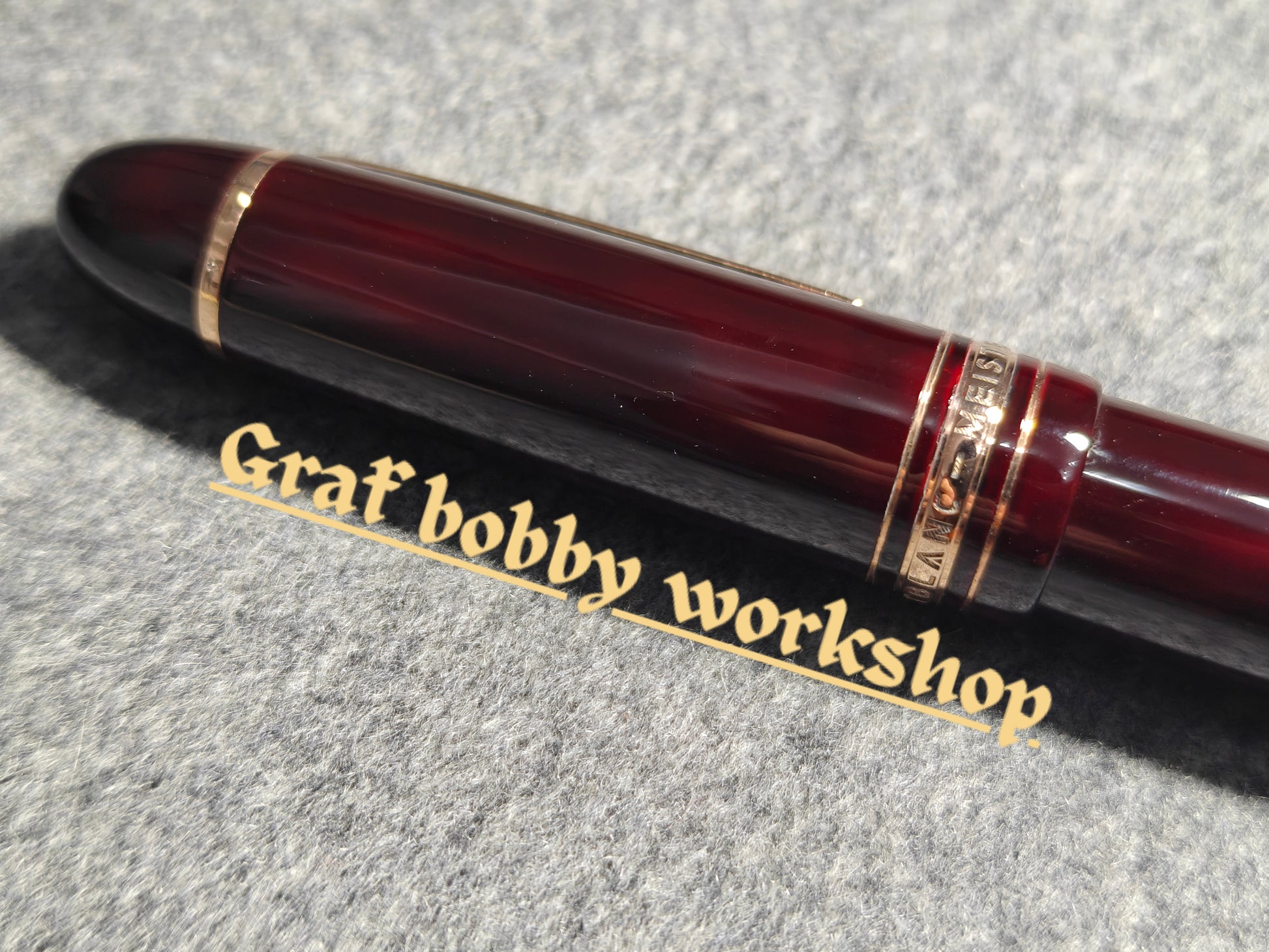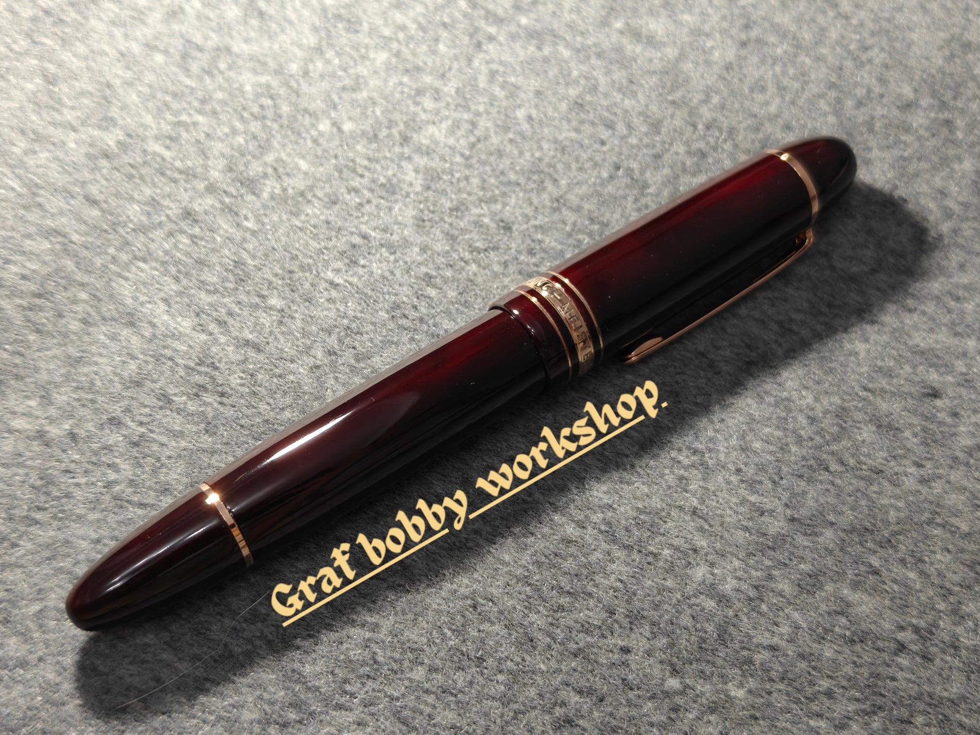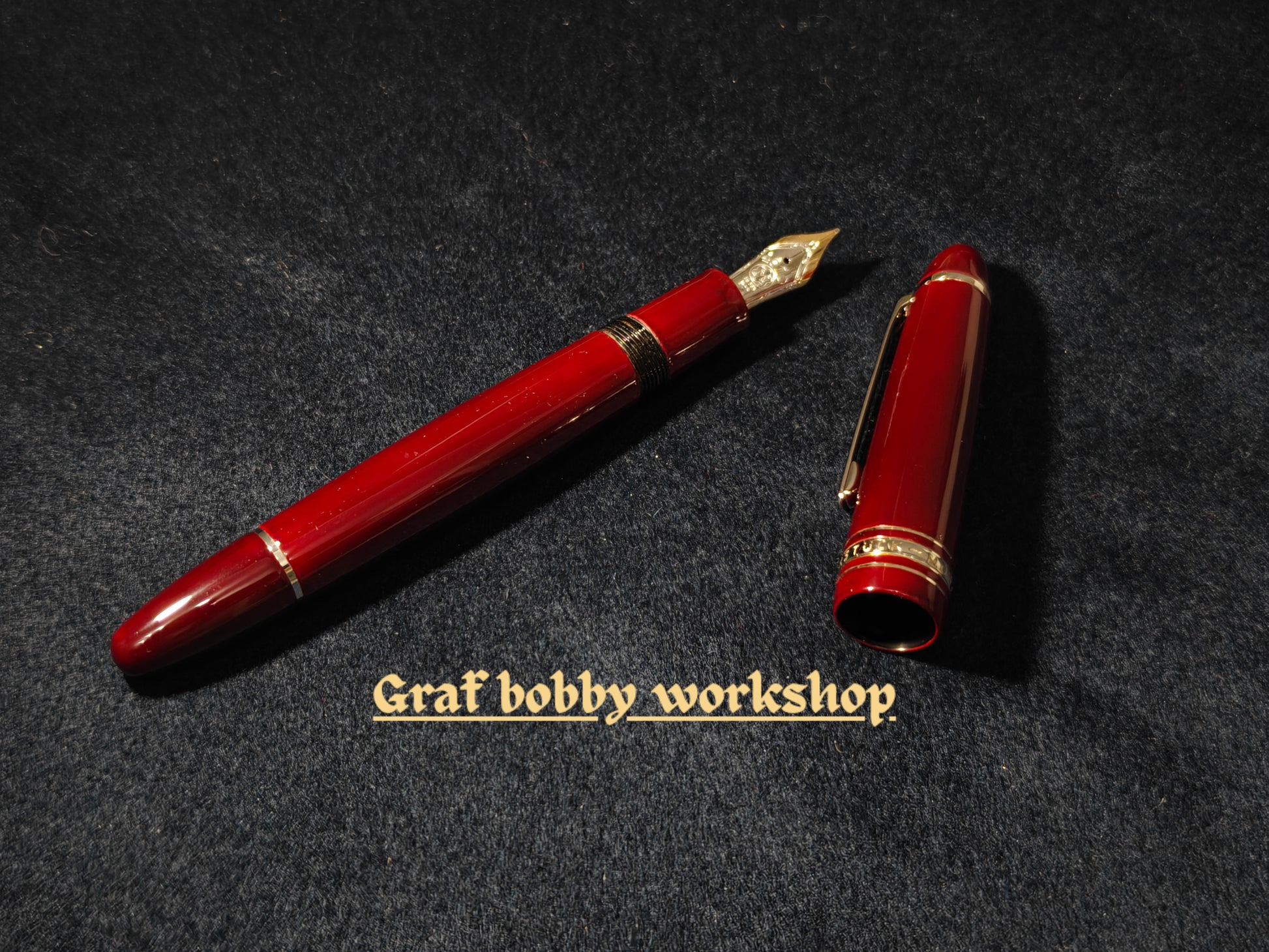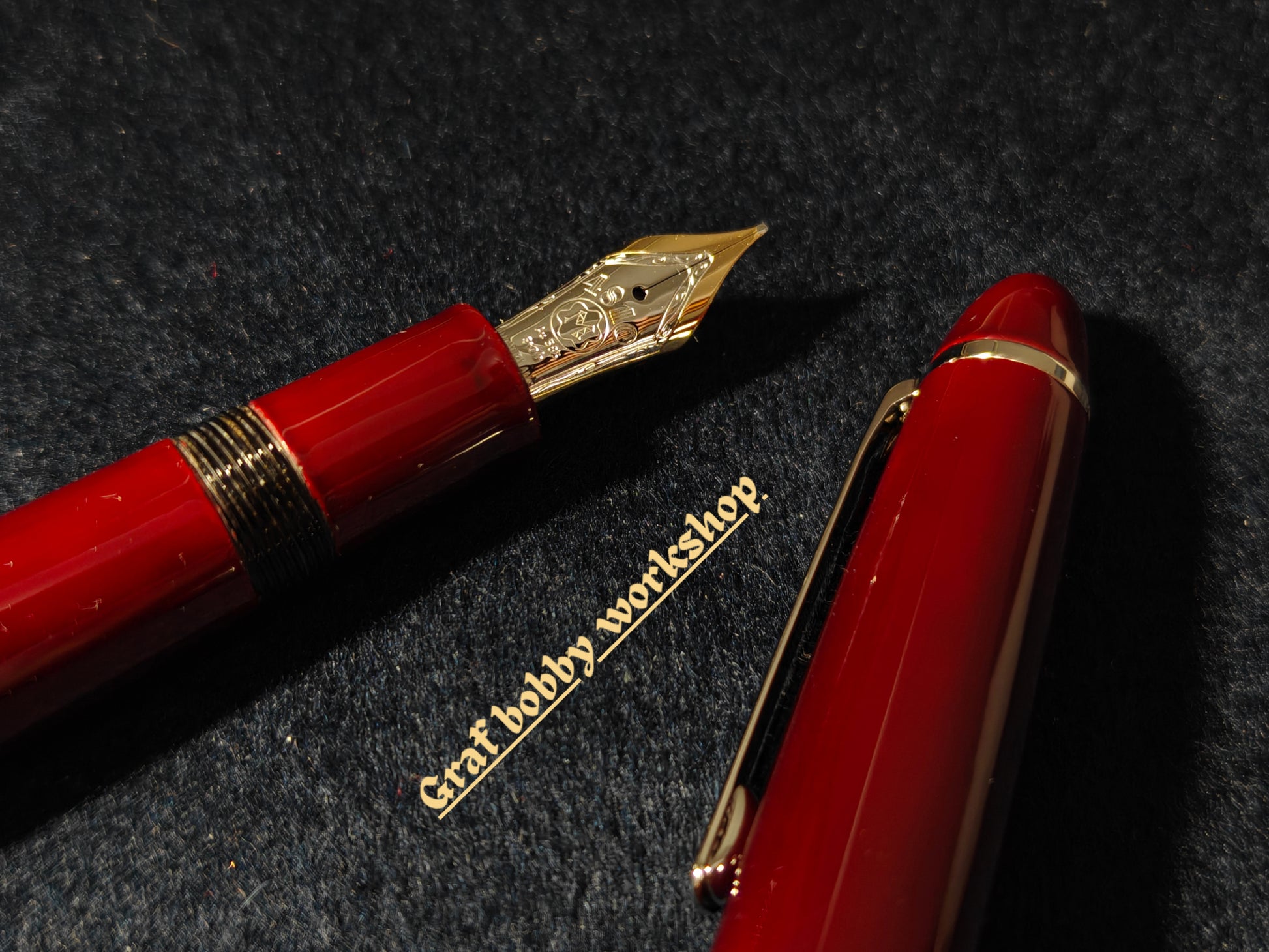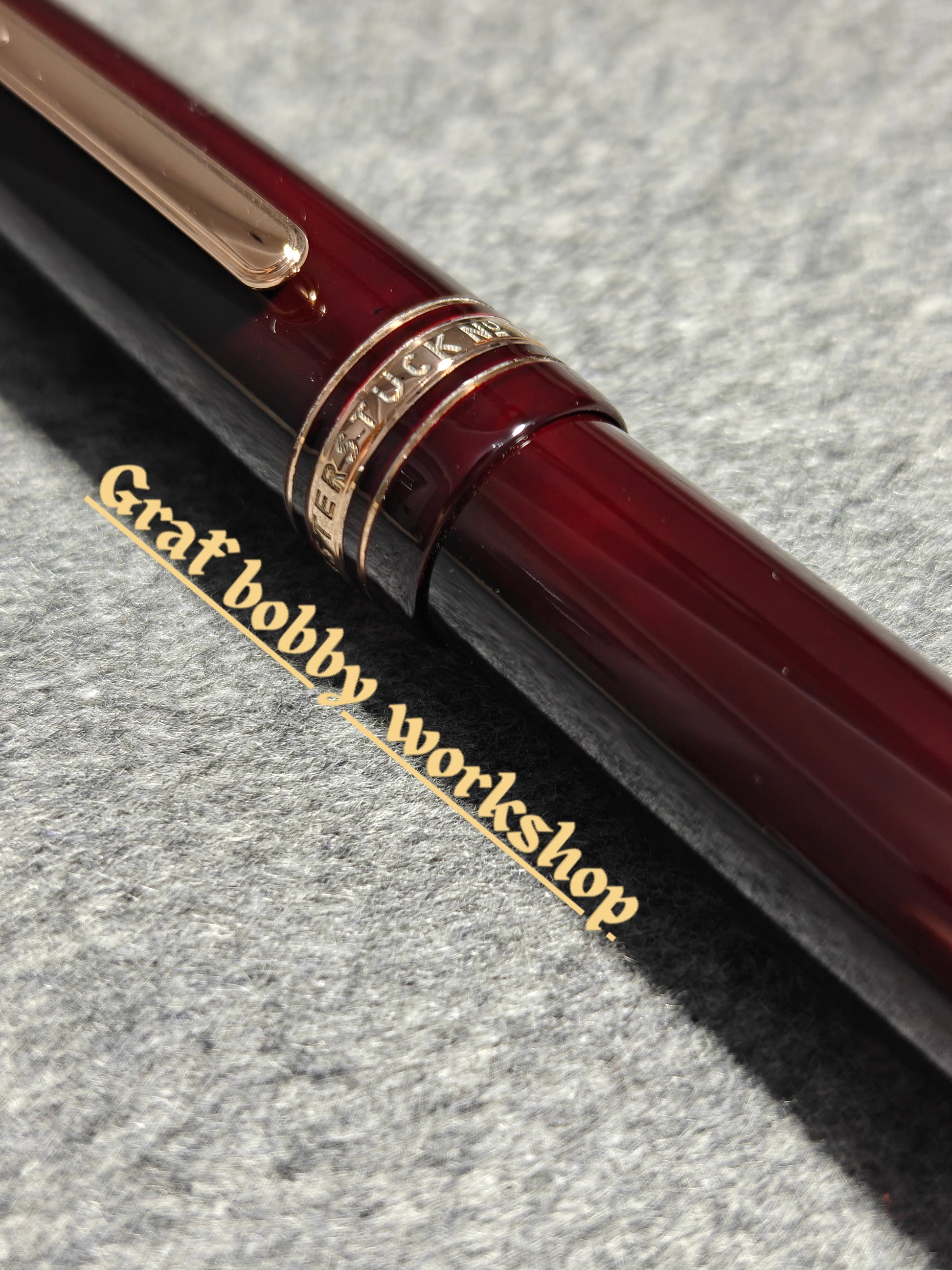 The Aka-Tamenuri pen gets its name from “Aka,” meaning red, and “Tame,” meaning lake. It’s coated with a lacquer that resembles lake water flowing over the pen’s surface. The color shifts with lighting: appearing deep purple-red in shadow, glowing red under soft light, and turning blood-red in direct illumination.